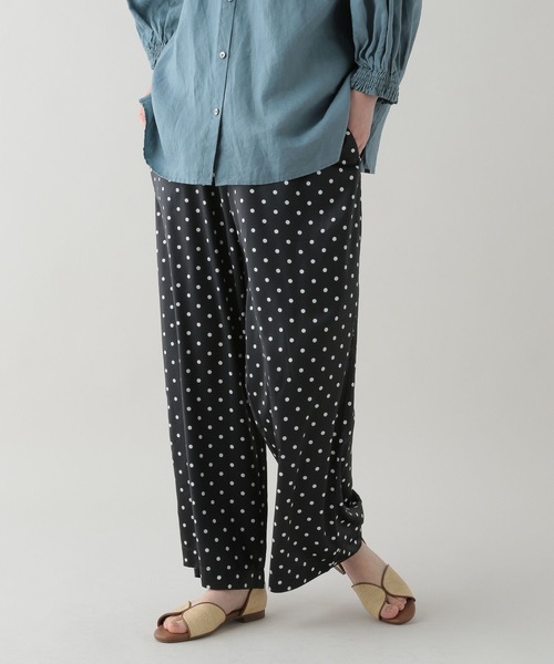 “natural by clip”は、素材やデザインにひと工夫加えたアイテムでこだわりの大人ナチュラルスタイルを提案します。ーーー光沢感のある生地にドットプリントをのせたパンツ。ーーーウエストゴムのイージーな履き心地でデイリー使いしやすく、さらりとした風合いはワンピースのインにもおすすめです。爽やかで夏に出番が多くなるネイビーと、ベーシックな定番カラーのブラックの2色を揃えました。