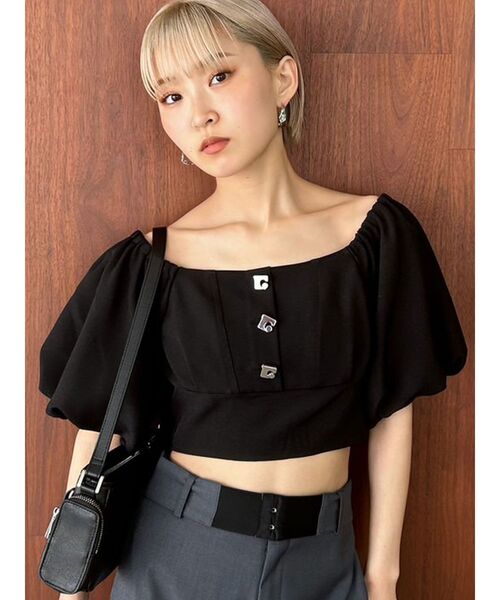 オフショルダーと2WAYで着用可能!※フロントの飾りボタンは3つになります。■デザインボリュームたっぷりの袖がポイントになっています。オフショルでも着用可能な2WAYデザイントップスです。フロントにはオリジナルボタンをポイントにしているので着るだけでスタイリングの主役になるアイテムです。脇の裾はコンシールファスナー開きで、着脱もしやすくなっています。■スタイリング短めの着丈なのでハイウエストボトムとの合わせがおすすめです。デニムでカジュアルダウンさせたコーディネートやシンプルなボトムと合わせたキレイめスタイルなど幅広いボトムに合わせやすいです。※着用画像はフラッシュの加減で実際の製品と色味等が異なる場合がございますので、生地のズームアップ画像をご確認ください。※ご利用の端末画面の設定により実際の商品と色味が異なる場合がございます。【商品特徴】透け感:なし伸縮性:あり(ショルダー部分/背面)生地の厚さ:普通サイズ感:普通裏地:なしポケット:なし【トクする便利機能】♡商品のお気に入り登録再入荷時、ラスト1点の時、セール開始時にお知らせします。♡ブランドのお気に入り登録新商品や再入荷、セール情報など、ブランドのお得な情報を受け取ることができます。是非ご活用ください!
