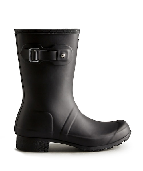 最初のウェリントン・ブーツは1817年に初めて登場しました。当時のメンズファッションは大きな改革の時期にあり、それまでの膝丈のズボンは踝までのトラウザーズに取って代わっていました。しかし、靴はと言えば膝丈ズボン用のヘシアン・ブーツしかなく、とてもトラウザーズに似合うものではありませんでした。そこで、ワーテルローの戦いの際、英国の英雄ウェリントン公が、ロンドンはセント・ジェームス通りにある贔屓(ひいき)にしていた靴屋に、これまでの18世紀然とした靴の改良を頼んだのです。そうして出来上がってきたものは、戦いには少々不向きではあっても社交には大変快適な、カーフスキン・レザーを使用したとてもスマートなものでした。これが“ウェリントン・ブーツ“あるいは”ウェリー“と呼ばれるようになった由縁です。このブーツは戦いに奮闘する愛国的な英国兵(紳士)の間で大変な人気となり、1840年代を通して洒落者の兵士(紳士)たちに支持されます。1850年代には少し丈が長いものがもてはやされましたが、続く1860年代に短靴が台頭してきて以降、その人気にも翳りが出てきて、乗馬用に使われるのみとなりました。 ブーツといえばレザーが当たり前だった当時、米国ではラバー製ブーツの製作が試みられ、起業家ヘンリー・リー・ノリスは、ラバーブーツ製造に適する工場を求めてスコットランドにやって来ました。これがハンター・ウェリントン・ブーツの歴史の始まりだったのです。