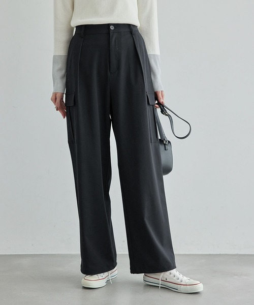 楽ちんパンツでストレスフリーにお出かけしよう!前回大人気のカーゴパンツ(品番:GDS14110)から新色ブラック(01)が登場! : 【デザイン・シルエット】 ・ゆったりシルエットでイージーな穿き心地のカーゴパンツ。 ・サイドのフラップポケットが、もものラインをカバー。 ・後ろウエストはギャザー入り。 【カラー】 ・ブラック、グレーの2色展開。 【スタイリングポイント】 ・ビッグサイズのスウェットや、ロングスリーブTシャツに合わせると、メンズライクな印象に。 ・レースブラウスで甘さを加えても◎。 ----------------------------- 裏地:なし 透け感:なし 伸縮性:ややあり 生地感・厚さ:普通 ポケット:あり(後ろ箱ポケットはフェイク) ウエスト:後ろゴム その他仕様:裾ドロスト可能 季節:春~秋 ----------------------------- ※撮影時の光、お使いのモニター環境によって色の見え方が違う場合がございます。 ※前回好評だったカーゴパンツ(品番:GDS14110)の追加品番ですが生産・物流価格高騰の影響を受け、新品番は価格改定をしております。 グレー(07)は継続カラー、ブラック(01)は新色。 ※モデル身長:165cm 着用サイズ:38