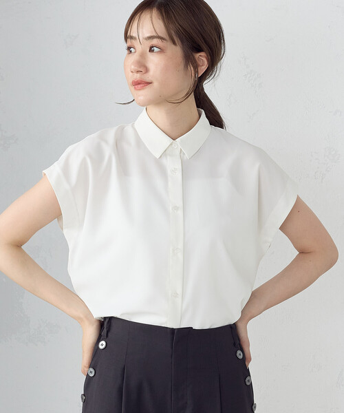 \オフィス きれいめコーデにおすすめ/《デザイン》丸みのあるシャツカラーが優しい印象のシャツです。ゆったりした分量感で、断ちだしの袖が今年らしいニュアンスのあるデザインです。前後差を付けた着丈が、どんなスタイルにも合わせやすいバランスです。サイドにはスリットを入れ、動きやすさを出すと共に、デザイン的に動きを持たせました。《素材》とろみ感のある滑らかでキレイ目な表面感が特徴の素材です。ポリエステル100%なので、しわになりにくく、取扱いがしやすい素材です。程よいハリ感が、きれいなシルエットを作ります。……………………透け感:なし厚さ:薄手伸縮性:なし光沢感:なし裏地:なしポケット:なし洗濯方法:洗濯機可……………………■気になる商品はお気に入り登録をおススメ■▼商品のお気に入り登録完売アイテムの再入荷通知、ラスト1点、またクーポンやお値下げ通知をお知らせします。▼ブランドのお気に入り登録新作アイテムの入荷や人気アイテムの再入荷、タイムセールやクーポンなど、いち早くブランドのお得な情報を受け取ることができます。※画像の商品はサンプルとなりますので実際の商品と仕様、加工、サイズが若干異なる場合がございます。※こちらの商品はFIVE FOXes独自の採寸方法となっています。本サイトのサイズガイドと採寸方法が異なる場合がありますのでご了承ください。
