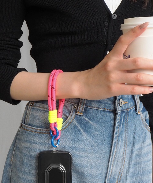 [ SS2024 / minia ] ついてると安心!便利! カジュアルでポップなスマホストラップ ストラップを装着できる透明シート付きの ショートタイプのスマホストラップ。 透明シートをお使いのスマホケースに入れるだけで どの機種にもストラップを取り付けられます。 スマートフォンを操作中でも手首が通る長さで 落としてしまう心配がなく安心。 また手が塞がりがちな雨の日や、お会計の時など ストラップを腕に通して両手があけられるので、 いろんなシーンで「つけててよかった!」って思うはず。 カラフルアイテムで夏気分もUP。 アウトドアやフェスでも大活躍間違いなし。 おでかけにマストな便利アイテムです。 ----------------- ・パープル ・ブルー ・ピンク ・ベージュ ----------------- ●ロープ部分全長…約27cm ●カラビナ…内径約1.8cm ●透明シートサイズ…約4cm×5.5cm ----------------- minia/ミニア いつものコーデにプラスするだけでトレンド感がUPするようなアイテムを提案。結婚式やパーティ・二次会などオケージョンシーンや通勤・オフィスカジュアルでも使えるシンプル上品なアイテムから、普段のおでかけ・通学でデイリーに使えるカジュアルな定番アイテムまで幅広くラインナップ。 靴・バッグをはじめ、イヤリング・ピアス・ネックレス・ヘアゴムなどのアクセサリー/ヘアアクセサリーなど、韓国ファッションで人気のアクセ・雑貨も取り扱っています。プレゼント/贈り物/お返しにもぴったり。 試しやすいプチプライス~素材や機能性にこだわったアイテムもご用意。また、靴箱に再生紙を使用するなど環境に配慮したサステナブルなものづくりに取り組んでいます。姉妹ブランドに『alala』『Una gardenia』『Hercheek』。 ※お使いのモニターや閲覧環境により、実際の色味と違って見える場合がございます。 ※使用素材の特性上、色味など僅かな個体差がある場合がございます。