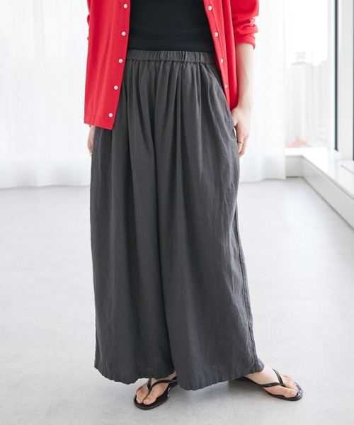 |2024SSCRAFT STANDARD BOUTIQUEライフスタイルメディア「キナリノ」に掲載されました。*キナリノへの掲載を記念して、別注の限定カラーの商品を作りました。 上品な素材感と落ち感が特徴のレーヨン混のリネンを使用し、パリっとしたハリ感を抑えた柔らかな肌触りの1枚です。 ゆとりのあるシルエットで気になるレッグラインも優しくカバー。 ウエストゴム仕様になっており、安心感のある穿き心地です。 シンプルなデザインで着回しもしやすく、ワードローブに是非取り入れたいアイテム。 同素材のシャツやジレとセットアップで着用するのもおすすめです。 ◆Styling 裾幅がしっかりとあるので、合わせのトップスはコンパクトめなTシャツや、 シャツでも羽織のスタイリングにすることで 全体のシルエットをAラインに綺麗にまとめることができます。 落ち感のあるシャツとの相性も良く、 キレイめアイテムをカジュアルダウンさせたこなれた雰囲気の演出にも適しています。 ++++++++++++ 透け感[無し] 裏地[無し] 伸縮性[無し] 光沢感[無し] 生地の厚さ[普通] 付属品[無し] ポケット[有り]前2つ ++++++++++++◆取り扱い方法 洗濯機洗い、日陰吊干し、アイロン可 ++++++++++++ ※詳しい取り扱い方法は、商品に付いている品質表示をご確認ください。 ※キナリノ別注カラーはチャコールグレーです。 ※その他のカラーは別注カラーではございません。 ※モデル着用画像は、光の当たり具合で色味が違って見える場合がございます。商品の色味は、物撮りの画像をご参照ください。 ̄ ̄ ̄ ̄ ̄ ̄ ̄ ̄ ̄ ̄ ̄ ̄ ̄ ̄ ̄ ̄ ̄ ̄ ̄● CRAFT STANDARD BOUTIQUE ●(クラフトスタンダードブティック)愛着を日常に「特別な1日」を彩ってくれるアイテムも「いつもの毎日」に寄り添ってくれるベーシックアイテムもここにはある。世界中の「長く愛されているもの」がベースになったアイテムたち。オトナ世代を中心に、エイジレスにオールジェンダーの誰もがファッションを楽しめる場所。服を着ない日はないからこそ、お気に入りの服たちに愛着が生まれる。愛着をまとい、心地よい日々を紡いでいく。私のお気に入りCRAFT STANDARD BOUTIQUE▼商品のお気に入り登録がおすすめです ▼商品ページ内のハートマークをクリック。完売時の再入荷や、最後の1点の通知、最後の1点など、お得なお値下げ情報を受けとる事ができます。【お知らせ】ページでも通知が確認できます。 ̄ ̄ ̄ ̄ ̄ ̄ ̄ ̄ ̄ ̄ ̄ ̄ ̄ ̄ ̄ ̄ ̄ ̄ ̄