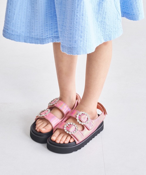 メタリック素材×ビジューモチーフで華やかに足元を彩るサンダル。ソールはブラックにすることで全体を引き締めつつ、甘さを抑えてくれる。 甲をホールドしてくれるダブルベルトと、踵ベルトは調整できるベルクロタイプになっているので、フィット感と着脱のしやすさを両立。 大ぶりのモチーフとマテリアルで、コーディネートのアクセントにぴったり。 ★《お気に入り登録》でお得な情報をGET★ ・「商品のお気に入り登録」で再入荷通知やラスト1の通知、セールやクーポンの通知も受け取ることができます!→ハートマークをクリック ・「ブランドのお気に入り登録」で新商品や再入荷など、お得な情報を受け取ることができます! ★サイズ展開★ 16cm 17cm 18cm 19cm 20cm 21cm