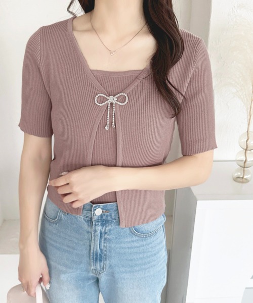 別々でも着回せる!ビジュー付きカーディガン&ニットキャミソール♡すっきりと着こなせるニットアンサンブルで、カーディガンは二の腕を程よくカバーし羽織るだけでこなれ感を演出してくれます♩リボンビジューは取り外しができるのでガーリーコーデにもカジュアルコーデにもぴったり!◎カーディガンをワンピースの羽織にしたり、キャミソールをシアーアイテムのインナーとして取り入れたり着回し万能なアイテムです!---------------------------------------透け感:なし伸縮性:あり裏地:なしポケット:なし---------------------------------------※ご覧のモニター環境や撮影環境により実際の商品と多少色味が異なって見える場合がございます。ご理解の程よろしくお願いいたします。【お買い物をよりお楽しみいただく為に♪】▼商品のお気に入り登録をおすすめします♡をクリック!完売カラーの再入荷や、ラスト1点の通知、セールの際の通知を受ける事ができます。ブランドのお気に入り登録もご一緒にお願い致します。