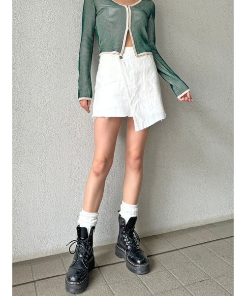 【商品説明】 ■detail フロント釦部分を斜め下にずらし着丈をアシンメトリーにしたデニムラップミニスカート。 裾部分をカットオフにすることで着こなしにラフさとオリジナリティ、そしてこなれ感を演出。スカートの中には共生地のショートパンツを付けているのでミニ丈でも安心して着られるところが嬉しいポイントです。この時期特に活躍するWHITEとL/BLUEの2展開。着脱はサイドファスナー仕様となっています。EGOISTオリジナルのBEIGEの革パッチ付き。 【生地感】 透け感:なし 裏地:あり 伸縮性:なし 生地の厚さ:普通 <おすすめ便利機能> ▼商品のお気に入り登録▼ 商品ページ内のハートマークをクリック! 完売カラーの再入荷や、 ラスト1点の通知、 お得なお値下げの通知を受ける事ができます。 ▼ブランドのお気に入り登録▼ 新商品や再入荷など、 ブランドのお得な情報をいち早くお知らせします。 ぜひご活用ください!