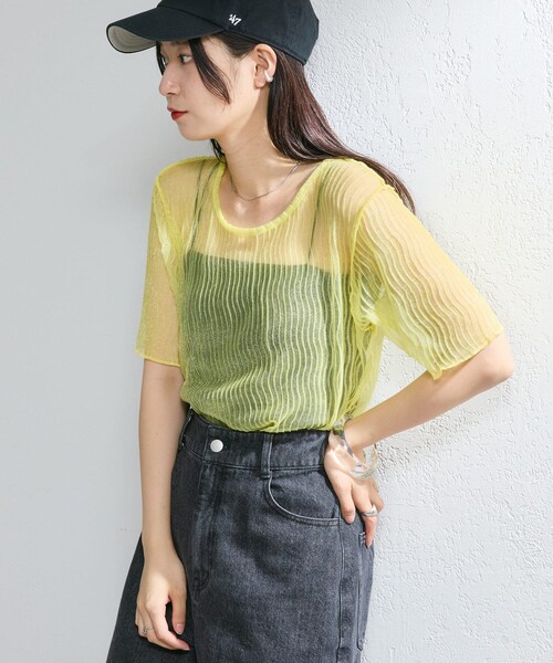 ビビットなカラー展開が目を惹くグリッターチュールTEE■デザインさりげないグリッターが大人っぽく、女性らしさを引き立てます。うねうねしたデザインは表面感があり、一枚でサマになります。■生地感チュール素材ですが滑らかな肌触りででチクチクしにくいです。通気性に優れ、伸縮性もあるのでストレスフリーな着心地。■コーディネート透け感を活かしてインナーとのレイヤードスタイルが楽しめます。キャミワンピースやサロペット、ビスチェのインナーにもおすすめ。■素材・洗濯表示素材:ナイロン100%洗濯:手洗いまたは洗濯ネットに入れ洗濯機の手洗いコースで洗濯可能タンブル乾燥:不可アイロン:110℃まで●洗濯ネットを使用してください。●濃色製品は白、淡色の製品と一緒に洗わないでください。●浸け置き洗いは避け、洗濯後はすぐに脱水して、形を整えて陰干ししてください。●アイロンの際は、当て布をしてください。●ご使用の際は、引っ掛けに十分ご注意ください。●着用の際は、ベルト・バッグ・アクセサリー・爪等の突起物により引っ掛かりが生じますのでご注意ください。※サイズ採寸は各モールによって異なり、多少の誤差が生じる可能性がありますのでご了承ください。※商品画像はサンプル品を使用しているため、実際の商品と仕様、加工、サイズが若干異なる場合がございます。また、可能な限り実物に近いカラーにて掲載していますが、使用しているパソコンのモニター設定や、携帯電話のメーカー・機種により実際のカラーと異なって見える場合がございます。予めご了承ください。▼商品のお気に入り登録完売カラーの再入荷通知を受け取ることができます。▼PALCLOSETアプリにてブランドフォロー新商品や再入荷等、いち早くブランドのお得な情報を受け取ることができます。<返品・キャンセルについて>・着用・洗濯後の返品は致しかねます。・商品到着後、着用前に商品を確認して頂きますようお願い致します。kastane240523