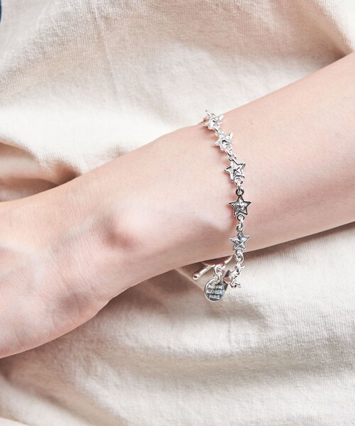 チェーンとはひと味違うキュートなモチーフが魅力的なブレスレット ■デザイン 大きすぎず、小さすぎない適度な大きさのスターモチーフを連ねた一品。 艶やかなシルバーカラーやマンテルタイプの留め具もアクセントを添えています。 カジュアルやスポーティなスタイルとも好相性です。 ・同シリーズのピアスのご用意もございます。対象品番:17333431544 <PHILIPPE AUDIBERT(フィリップ オーディベール)> 1989年にフランス・パリで創業して以来、一貫してハンドメイドにこだわったジュエリー作りを展開している〈フィリップ・オーディベール〉。シルバーやゴールドなどの良質なメタルパーツを駆使したエレガントな佇まいでありながら、手に取りやすいリーズナブルなプライスが実現されている。 【注意事項】 ※商品を使用前に、タグ等に記載されている「取り扱い上の注意書き」、「洗濯表示」を必ずご確認ください。 ※商品画像は、光の当たり具合やパソコンなどの閲覧環境により、実際の色味と異なって見える場合がございます。あらかじめご了承ください。 ※商品の色味の目安は、商品単体の画像をご参照ください。 店舗へお問い合わせの際は、全国のUNITED ARROWS各店舗まで下記の品名/品番をお申し付けください。 品名:P/A APRIL BRC 品番:17333431549