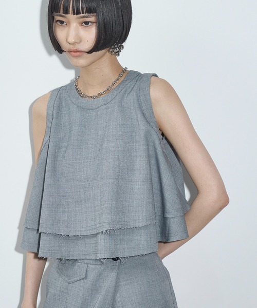 THE YOn 2024 Summer Collection モードに着こなせるフリルブラウス 【Design】 フリルを重ねた動きのあるデザインが目を惹くアイテム。 裾は断ち切りで仕上げモードなアクセントをプラス。 コンパクトなクロップド丈にまとめることで、フリルの立体感が映える仕上がりに。 真面目な素材にスタイリッシュなアメスリデザインを合わせた、甘くないフリルブラウス。 【Styling Point】 パンツスタイルでとことんモードに着こなすのがおすすめ。 ボトムスはややワイドなシルエットを選ぶことでメリハリのある着こなしに。 ◇同素材でパンツ〈品番:TY24264〉もご用意しております。 --------------------------- 裏地:あり 光沢感:なし 透け感:なし 伸縮性:なし 生地の厚さ:普通 --------------------------- 【お買い物をお楽しみいただく為に】 ▼お気に入り登録をオススメ致します。 『♡』をクリックして下さい。 ・《商品のお気に入り登録》で再入荷通知や、ラスト1点の通知、セールの際の通知も受け取ることができます。 ・《ブランドのお気に入り登録》で新作商品や再入荷など、お得な情報を受け取ることができます。 【ATTENTION】 ※画像の商品はサンプルです。 実際の商品と色味、仕様、加工、サイズ、素材等が若干異なる場合がございます。 ※撮影場所やお使いのモニター環境により若干お色味が異なる場合がございます。 ※製品によっては染料の特性上、湿った状態や汗をかいた状態での長時間の放置、または摩擦により、他のものへ色移りする恐れがありますので、着用時にはご注意下さい。 ※お洗濯は洗濯ネットを使用し、他のものとの混合洗いはお避け下さい。色落ちや色移りの原因となります。 タンブラー乾燥はお避け下さい。 ※風通しがよく、湿気の少ない日の当たらない場所で保管して下さい。 ※また製品加工上、お手元に届く際に匂いが生じる場合がありますが、 ご使用を続けていく事により匂いは軽減されます。