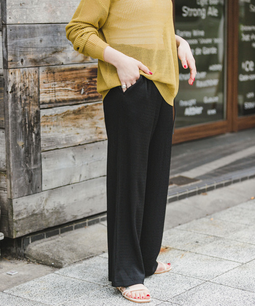 全体にシワ加工を施した独特な風合いが特徴のヨウリュウ生地で仕立てたイージーパンツ。肌への密着が少なく、快適な着心地を叶えてくれますよ♪軽やかな素材でリラックスムードのある1着◎シワになりにくく、長時間の着用もこなしてくれる優秀アイテムですよ♪【2024 Spring/Summer】【24SS】※この商品の(バック)ポケットはフェイクです。予めご了承ください。※商品画像は、光の当たり具合やパソコンなどの閲覧環境により、実際の色味と異なって見える場合がございます。予めご了承ください。※商品の色味の目安は、商品単体の画像をご参照ください。-----------------------------《スタッフレビュー》[スタッフA]年齢 : 20代後半、身長 : 156cm、体型 : 普通普段の着用サイズ : S,M【着用カラー/サイズ】YEL / FREE【サイズ感】足首くらいの丈感で、ウエストゴムでハイウエストでも着ていただけます。しっかり幅広めですが、ボリュームは控えめです。【素材感/着心地】ストレッチ性のある柔らかい生地感でとても着心地良いです。薄手ですが透け感も気にならず涼しく着ていただけます。【その他】ビビッドすぎない絶妙なイエローがとても可愛いです◎ウエストのゴムも締め付きすぎないのでトップスをインしやすいですし、楽ちんに履いていただけます。形はベーシックなワイドパンツですので、トップスとも合わせやすいです!-----------------------------▼お気に入り登録のおすすめ▼お気に入り登録商品は、マイページにて現在の価格情報や在庫状況の確認が可能です。お買い物リストの管理に是非ご利用下さい。素材感透け感 : なし伸縮性 : あり裏地 : なし光沢 : なしポケット : あり