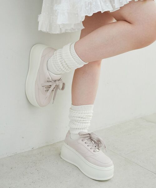 ボリューム感たっぷりな厚底スニーカー■デザイン今シーズンのトレンドに欠かせない厚底スニーカーをMAJESTIC LEGONらしいニュアンスカラーで仕立てた1足。7.5cmのボリュームヒールは脚長効果バツグンでスタイルをよく魅せてくれます。取り外しできるプレート付きでさりげないポイントに。インソールと履き口の周りにはクッションを入れ、足を包み込むようなふわふわな履き心地に。見た目以上の軽さと安定感のあるソールでたくさん歩く日にもオススメです。■サイズ感甲高・甲幅のある方も履いていただきやすいサイズ感。MAJESTIC LEGONシューズ対応サイズSサイズ 約22.0~23.0cmMサイズ 約23.0~24.0cmLサイズ 約24.0~25.0cm※素材の特性により若干差異が生じる事がございます。■スタイリングフェミニンにもカジュアルにも幅広く合わせられる万能スニーカー。厚底で盛れるのでミニスタイリングとも相性ばっちり◎■商品のお気に入り登録 再入荷通知やのこりわずか、お得なプライスダウンの情報も受け取ることができます。ぜひご登録ください◎※サンプルでの撮影の為、製品と仕様が異なる場合がございます。※SサイズはWEB限定サイズとなります。