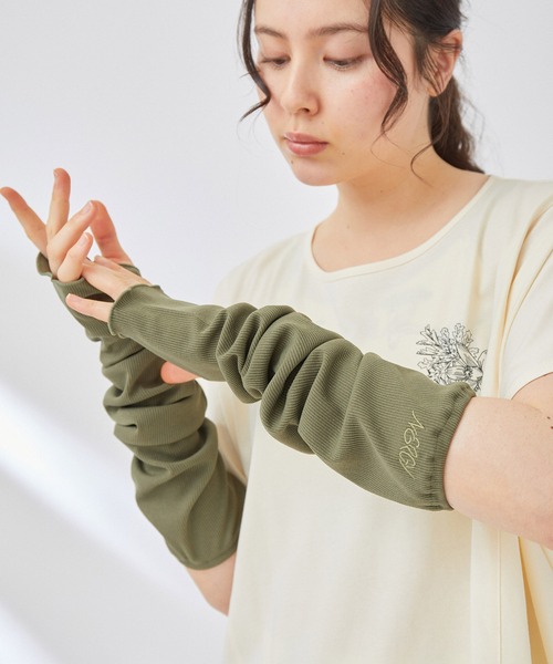 【デザイン・シルエット】気になる紫外線を防いでくれるリブ素材(UPF50+)のアームウォーマー。袖口がお花をイメージしたデザインになっており、ロングTシャツやアウターの下にレイヤードする着こなしもおすすめ。日焼け予防として、スタイリングのワンポイントとして長いシーズン着用できるアイテムです。【素材】UVカット素材(UPF50+)ーーーーーーーーーーーーーーーーーーーーーーー裏地:なし光沢感:なし伸縮性:あり生地の厚み:ふつう透け感:なしーーーーーーーーーーーーーーーーーーーーーーー【モデル着用サイズ】モデル H170 B86 W69 H95着用サイズ FREE「Enchanting Floral Wellness」-すべての花で喜びとウェルネスを融合させる-をテーマに、日比谷花壇とNERGYのコラボレーションが実現しました。今回のコラボレーションに合わせて、ユーカリ、ゼラニウム、ネロリをモチーフにした、オリジナルグラフィックを制作。「生命力あふれるお花のデザインを身に付けることで、植物がお守りとなり、前向きで健やかな心と体をサポートしたい。」そんなメッセージを込めたコレクションです。【日比谷花壇】1872年創業。現在、全国約190拠点で展開。ウエディング装花や、フラワーギフト・生花の販売、お葬式サービス、景観プロデュース、花柄サービス、地域のまちづくり等、花とみどりを通じた高品質、高付加価値のライフスタイル提案を続けている。アームカバー/アームウォーマー/UV/紫外線対策/ヨガ/ピラティス/フィットネス/トレーニング/ジム※実際の商品はお客様のお使いの端末や閲覧環境により、写真と実物の色味や質感が多少異なって見える場合がございます。予めご了承ください。※伸縮性に富んだ素材のため、多少のサイズ誤差が生じる場合もございます。