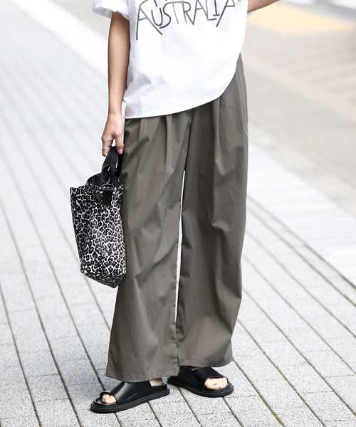 【2024SS】 JOURNAL STANDARD relume たくさんのリクエストありがとうございます!! 大好評につき追加生産決定! ※旧品番:24030462718020の追加商品です。 ※若干の仕様変更がある場合もございます。 ※旧品番はすでに店舗に入荷している品番と、今後入荷予定の品番を混在して掲載しております。 在庫数等は店舗にお問い合わせ下さいませ。 ※《グレー》のみの追加生産です。 ※こちらの商品はWEB限定の追加生産です。 ※詳細画像は旧品番《ネイビー》になります。 ◆暑い夏を快適に過ごせる、機能性素材の【MULTI FUNC+】シリーズが登場。 軽やかなナイロン素材に、撥水とUVカット加工を施した機能性ボトムス。 ウエストからギャザーをふんだんに入れ、リラックス感のあるワイドシルエットに仕上げました。 ウエストは総ゴムの仕様で、内側に紐も通っているので 体型に合わせて調節が可能なのも嬉しいポイント◎ また、軽くてハリ感のあるナイロン素材なので シルエットを綺麗にキープしてくれます。 タウンユースはもちろん、アウトドアシーンでも活躍するアイテムです。 同シリーズで下記もございます。 【MULTI FUNC+】ストレッチオールインワン(品番:24030462112020、24030462112220) 【MULTI FUNC+】ドライタッチカーディガン(品番:24080462111020) 【MULTI FUNC+】ドライタッチプルオーバー(品番:24080462110020、24080462110120) 【MULTI FUNC+】ギャザーイージースカート(品番:24060462711020) 【MULTI FUNC+】フレアワンピース(品番:24070462716020) 【MULTI FUNC+】AラインTEE(品番:24070462715020) ※取り扱いについては、商品についている品質表示でご確認ください。 ********************** 透け感:なし 裏地:なし 伸縮性:ややあり 光沢感:なし 生地の厚さ:やや薄手 ********************** 【スタッフ着用コメント】 《スタッフM》 身長:160cm/体型:普通/普段サイズ:M/着用サイズ:36 サイズ感:全体的にゆったりめ。36でも問題はなかったですが、私はズルッと穿きたいので38が好みです。 素材感:マウンテンパーカーのようなハリ感のあるナイロン素材。ただ、そこまでシャカシャカはしていません。 着心地:ベーシックなデザインなので、着回しやすく重宝しそう。 ********************** ※照明の関係により、実際よりも色味が違って見える場合があります。 またパソコン・スマートフォンなどの環境により、若干製品と画像のカラーが異なる場合もございます。 ※商品の色味は、商品アップ画像をご参照ください。 本体:手洗い可能