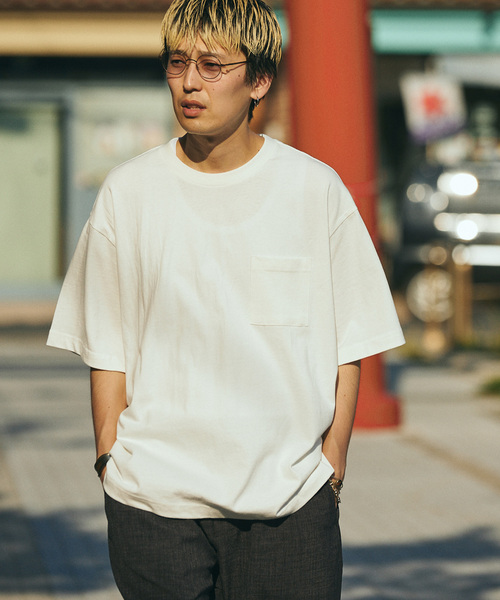 AMERICANシリーズから前回大人気だったUSAコットン素材を使用した新作Tシャツが登場! USAコットンはアメリカの"コットンベルト"と呼ばれる地帯で栽培されている綿です。 新シリーズはUSAコットンの中でも希少性が高く、最高品質のスーピマコットンを使用。 しなやかさ、なめらかな肌触り、耐久性、発色の美しさに優れています。 ラフィ天竺のネップやムラ感のある糸を一部使った、しっかりした厚みのあるTシャツです。 リラックス感のあるサイジングで、1枚着としても存在感のあるTシャツに仕上がりました。 製品染めを施した、ブラック・ホワイト・カーキ・ブルーの4色展開。 【COTTON USA】 アメリカは世界最大の綿花輸出国。近代農法とバイオテクノロジー、さらに肥沃な大地と太陽、山々のピュアな雪解け水の恵みを受けて育ったアメリカ綿は、品質がよく安定的に供給されています。 上質なアメリカ綿を使い、厳しい基準に合格した綿製品にのみにCOTTON USAマークが付けられます。 ********************** 裏地:なし 伸縮性:あり 光沢感:なし 生地の厚さ:普通 ********************** 【スタッフ着用コメント】 《スタッフH》 身長:173cm/体重:62kg/体型:中肉中背/普段サイズ:M/着用サイズ:L サイズ感:ゆったりしたリラックス感のあるサイズ感です。 素材感:ハリ感もあり、しっかりとシルエットの出てくれる素材感です。 着心地:肌触りもさらっとドライな質感なので、快適な着心地です。 ********************** 《画像についてのご注意》 ※照明の関係により、実際よりも色味が違って見える場合があります。 またパソコン・スマートフォンなどの環境により、若干製品と画像のカラーが異なる場合もございます。 ※商品の色味は、商品アップ画像をご参照ください。 《商品のお気に入り登録について》 「カートに入れる」または「予約する」右側のハートマークを押していただくと、 再入荷、残り1点、セールなどの通知を受け取ることが出来ます。 モデルサイズ:身長:178cm 着用サイズ:L 本体:洗濯機洗い(弱)