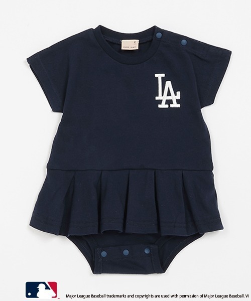 「MLB(メジャーリーグベースボール)」で活躍するチームのロゴマークが映えるロンパースです。 プリーツスカートがドッキングされたキュートなデザインにアイキャッチ。 カラーによってモチーフを変えたアソート展開で自分好みが選べるのも魅力です。 きょうだいでお揃いコーデを楽しめるアイテムを展開しています。 内側にはお名前を記入できるタグつき。 【おすすめの着用時期は春夏シーズン】 【透け感】透けない 【生地の厚さ】普通 【伸縮性】あり 【裏地】なし 【ポケット】なし