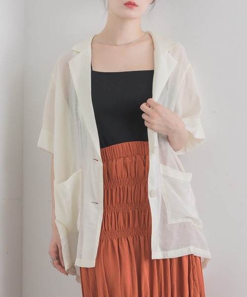 <夏らしい素材でデイリー使いにぴったりなサマージャケット> ▼デザイン シアー素材から来る透け感が夏を感じるシアージャケット! 柔らかい着心地で、汗ばむ夏も着やすい1枚! キャミやTシャツにゆるっと羽織るだけでコーデがぴしっと決まります。 ポケットもついていて、実用性もあるマストバイジャケット! ▼コーディネート シンプルでどんなアイテムとも合わせの良いアイテム。 オシャレ上級者さんは上からビスチェをレイヤードするスタイリングがおすすめ! ▼おすすめ顔タイプ クールカジュアル(ブラック)/フレッシュ(ホワイト) ------------------------------ 生地感:薄手 伸縮性:なし 透け感:あり 裏地:なし ----------------------------- ▼ブランド紹介 RETRO GIRL (レトロガール) 自分らしい“ベーシックアイテム”と 新しい自分の”トレンドアイテム”が 見つかる場所 今らしいファッションを楽しむ 女性のためのブランド #シアー #シアージャケット#ジャケット #シアー素材 #サマージャケット ▼注意事項 ※撮影環境やモニター環境によって実際の商品とお色味が 多少異なってみえる場合がございます。 品番:RS456621T001 / 品名:シアーテーラードJK