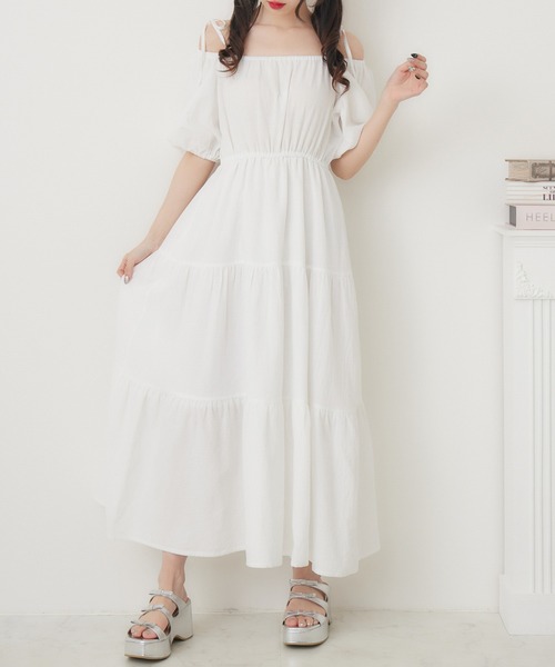 <清楚で夏らしいモテ確定ワンピース> ▼デザイン ボリューム感のあるパフ袖が気になる二の腕をカバーしてくれる1枚。 ウエストの高い部分で切替られているので、スタイルアップ効果も◎ 肩リボンで着丈も調節して頂けるので、身長に合わせた長さで着ることができます。 ティアードデザインで女性らしいAラインシルエットに! ▼コーディネート 1枚でスタイリングの完成するワンピース。 麦わら帽子と合わせれば、正統派の夏が来る!! ------------------------------ 生地感:普通 伸縮性:なし 透け感:なし 裏地:ある ------------------------------ ▼ブランド紹介 ems excite (エムズエキサイト) “more fun more cute” 今をもっと楽しく もっと可愛いくいたい女の子に向けた girly cuteなブランド #ワンピース #ティアードワンピース #上品 #フレンチガーリー #デートコーデ #ピンクコーデ #ホワイトコーデ ▼注意事項 ※撮影環境やモニター環境によって実際の商品とお色味が多少異なってみえる場合がございます。 品番:ES437522B003 / 品名:オフショルティアードOP