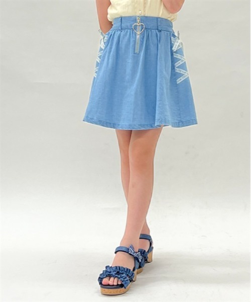 【アイテム説明】 ロゴプリント入りのサイドレースアップがポイントのデニムスカパンです。 後ろゴムで履きやすく、また、裏地も薄くて涼しい綿混素材で、履き心地◎。 【デザイン】 ハートリングの前ファスナーデザインがポイント。 ブリーチ×キナリリボン、インディゴ×ラベンダーリボンの配色感が、爽やかな印象に。 【コーディネート】 夏らしいデニム素材なので、 リボン付コットンドビーブラウス(DL72X01KO)やTシャツと合わせて、カジュアルコーデを楽しめます♪ 【素材】 裏地 あり 透け感なし 伸縮性なし ▽ axes femme kids * アクシーズファムキッズ & axes femme PETIT LADY * アクシーズファムプチレディ axes femmeのテイストに、 キュートさをプラスしたkids。ちょっぴり大人なPETIT LADY。 女の子のオシャレを叶える フェミニンガーリースタイル ********************** .。.:? お気に入り登録のおすすめ ?:.。. ∇気になるアイテムを登録∇ ハートをクリックしてお気に入りに登録すると 完売カラーの再入荷やラスト1点の通知、セールの通知を受けとることができます。 ∇ブランドを登録∇ 新商品や再入荷、セール通知など、いち早くブランドの情報を受けとることができます。 是非ご利用頂き、お買い物をお楽しみ下さい。 .。.:? 商品について ?:.。. ・サイト上のカラー名と、お届け商品に記載されているカラー名が異なる場合がございます。 ・商品の色味は、撮影場所や光のあたり具合、お客様のお使いのPCのモニター環境などにより色味が違って見える場合がございます。 予めご了承の上ご注文下さい。 .。.:? 返品・キャンセルについて ?:.。. ・着用、洗濯後の返品は致かねます。 ・商品到着後、着用前に商品を確認して頂きますようお願い致します。