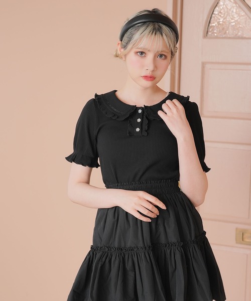スポーティーライクな甘めポロトップスのご紹介。 【デザイン】 プレッピー感とスポーティーさが今ドキなデザインのカットソートップスです。 襟元の釦を開けて、被りで着用する仕様です。伸縮性があるので着脱もらくちんです◎ 襟や前立て部分にフリルをあしらい、前立てのシャツ釦はお花のデザインになっているのでカジュアルになりすぎず、ガーリーさんも着れるスポーティーアイテムを作りました♪ 襟配色のラインテープもコーデのアクセントになってくれています♪ アクティブに動く日に着たり、スタイリングの外しアイテムとして取り入れれる1枚です! 【素材】 伸縮性のあるテレコリブカットソー素材です。 サラッとした肌触りで着心地抜群で、暑い季節も通気性がいいので快適に着用いただけます。 ピンクやアイスグレーはほんのり透ける可能性がありますので、淡色インナーの着用をおすすめします。 【コーディネート】 定番のモノトーン2色と、儚くて可愛い淡いピンクとグレーもご用意。 流行りのバレエコアやフレンチガーリーはもちろん、スクールライクなプレッピーコーデにもぴったりの1枚♪ ボトムを選ばず、スカートやパンツはもちろんキャミワンピース等と合わせても可愛いアイテムです! ※ご覧のモニター環境や撮影環境により実際の商品と多少色味が異なって見える場合がございます。 ご理解の程よろしくお願いいたします。 【お買い物をよりお楽しみいただく為に】 ▼商品のお気に入り登録をおすすめします ♡をクリックしてください。 完売カラーの再入荷や、ラスト1点の通知、 セールの際の通知を受ける事ができます。 ブランドのお気に入り登録もご一緒にお願い致します。