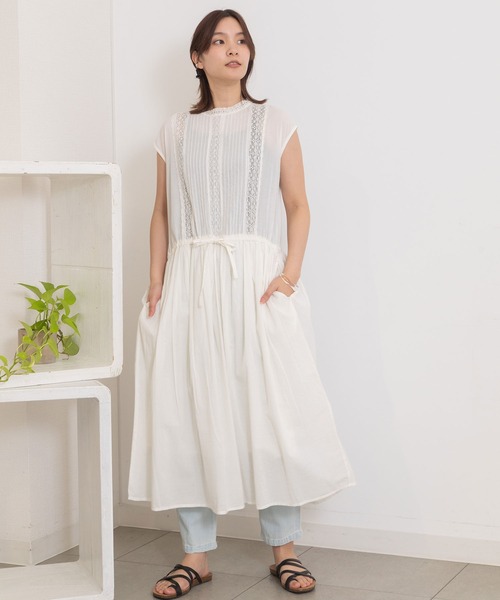 <made in INDIA> 軽く涼しいノースリーブワンピース ■Point ・ピンタックとトーションレースをあしらった華やかな雰囲気のノースリーブのワンピース。身頃にはゆとりを持たせ、高すぎないウエストの切り替えで、デニムに合わせたりとカジュアルな着こなしもしやすいデザインです。 ・インド綿ならではの軽さがあり、通気性が良く涼しい着心地です。 ・両サイドポケット付き。 -------------------- 透け感:あり 厚さ:薄手 伸縮性:なし 裏地:あり -------------------- ◆インド製品について◆ 細やかな手仕事と肌に優しいナチュラルな風合い、 インド綿ならではの軽やかさをお楽しみいただけます。 生地から縫製まで 全てをインドで生産をしています。 染色における個体差、天然素材による生地の織りむら・ネップなどによる 表情の違いが出ることがあります。 刺繍や装飾はインドの職人が1点1点手作業をしております。 風合いや糸の始末など 商品によって違いが出ることがあります。 天然の染料が使われており、 摩擦や水濡れで色落ちや色移りがしやすいです。 酵素系の漂白剤に弱いので、中性洗剤で単体での手洗いがおすすめです。 お取り扱いには十分にご注意ください。 ◆注意事項◆ 可能な限り実物に近いカラーにて掲載しておりますが、ご使用のパソコンやスマートフォンなどの端末の環境によって、実際の色味と異なって見える場合がございます。予めご了承ください。 サンプルで撮影している商品もございます。その場合、実際の商品とは色味・仕様が異なる場合がございますので、予めご了承ください。 POU DOU DOU プードゥドゥ ひと手間加えた存在感のある「日常着」 いつまでもときめきとかわいいを忘れない方への 愛着を持てるワードローブ = お気に入り登録がおすすめ!= POU DOU DOUのお得な情報をいち早くお届け致します◎ アイテムをお気に入り ⇒ SALE START / 完売COLOR再入荷 / LAST1点 etc... ブランドをお気に入り ⇒新商品 / 再入荷 /クーポン・セール情報 etc..."