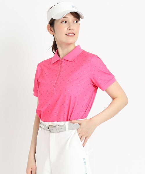【デザイン】 小さいロゴを散りばめたデザインの半袖ポロシャツです。 散りばめられたロゴそれぞれがアクセントになり、夏の一枚着として映えるアイテム。 統一感のあるデザインは、スタイリングを上品に見せてくれます。 ゴルフにはもちろん、タウンユースとしてもおすすめの一枚。 【素材】 落ち感のあるやわらかい素材です。 ストレッチがしっかりきいているのでスイングしやすいです。 さらさらとして素材なので、レイヤードスタイルで組み合わせた際も引っ掛かりにくいです。 【ADBT】 ミニマル・ベーシックをテーマに、アダバットが持つブランドのアイデンティティ、感性をキープしながら、お求めやすいプライス帯で展開しているディフュージョンラインです。 メンズ・レディースウェアや雑貨をラインナップしています。 ゴルフだけでなくアクティブな休日の様々なシーンで『ADBT』のアイテムをお使いいただけます。 ※照明の関係により、実際よりも色味が違って見える場合があります。また、パソコン・スマートフォンなどの環境により、若干製品と画像のカラーが異なる場合もございます。 モデル情報:身長169cm B83 W61 H89 着用サイズ:38(M) 店舗へのお問い合わせ商品番号:119-18580 ●製品寸法: 38(M):着丈60cm B84cm 袖丈18cm 肩幅36cm 40(L):着丈60cm B90cm 袖丈18cm 肩幅37cm 42(LL):着丈62cm B96cm 袖丈19cm 肩幅39cm 備考: