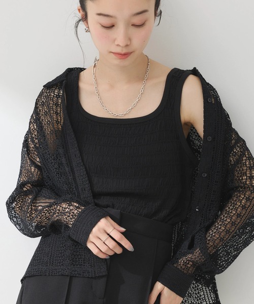 表情感のあるシャーリングが寄せられたタンクトップ。 ネックラインや袖口はパイピング加工を施しているので、さりげないアクセントになります。 コットンベースの肌触りの良い生地感も魅力的◎ インナーとしてはもちろん、トップスのように着用した着こなしもおすすめです。 透け感[無し]※オフホワイトやや有り 裏地[無し] 伸縮性[有り] 光沢感[無し] 生地の厚さ[普通] 付属品[無し] ポケット[無し] ●製品寸法: S:バスト36cm 着丈58cm 肩幅26.5cm 裾幅40cm M:バスト39cm 着丈60cm 肩幅27.5cm 裾幅43cm 備考:
