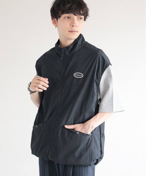ーーー ■ポイント ・スポーティー/ミリタリースタイルにぴったりなナイロンベストが夏バージョンにアップデート! ・胸元のブランドロゴがアクセントになるデザイン! ・トレンド感溢れるルーズシルエット/オーバーサイズ ■デザイン・シルエット ・広いアームホールでオーバーサイズのインナーと合わせてもかさばりなく着用可能。 ・裾にはドローコードを施しているので、トレンドの短丈スタイルにも変形可能です。 ・首元は立ち上がりのあるハイネック仕様で、簡単にAラインシルエットを実現〇 ■素材 シャカシャカとしたスポーティー/アウトドア感溢れるナイロン素材。 コットンナイロン地でお作りしたので、お洗濯も可能です。 裏地をなくした薄手生地は、夏場のレイヤードスタイルを涼しくしてくれます。 ====== ■参考サイズ M:~175cm L:175cm~ ====== ーーー ■スタイリング シンプルになりがちな夏にぴったりなナイロンベスト。 ミリタリースタイルから、トレンドのノームコアスタイルまで様々なコーデをお楽しみ頂けます。 カーゴパンツ合わせは勿論のこと、ナイロンパンツと合わせたテックコーデもおススメです! 【RIDINGMANIA/ライディングマニア】 2000年カルフォルニアの硬派なビーチタウン「ベンチュラ」にてダウンヒルBMXクルーによってスタートしたストリートブランド。 2000年代初頭、グラフィックデザインのサンプリングのセンスの良さから、 カルフォルニアや日本のキッズから絶対的な支持を受け、日本でも販売されていました。 すでにブランドの展開は終了し、当時とのつながりはございませんが、当時の遊び心ある想像直とストリートカルチャー精神を継承し、 過去のスポーツ、ワークウェアなどを再構築して現代的に新たなブランドとして日本で展開します。