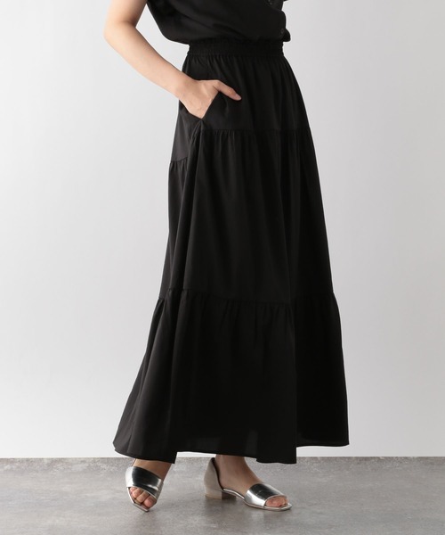 【MATINEE LINE】 【機能/素材】 イージーケア 洗濯後シワになりにくい イージードライ 洗濯後乾きやすい 接触冷感 やや表面感のある風合いが高見えする、肌馴染みの良い薄手のポリエステル素材 【デザイン】 華やかな印象のティアード切り替えがかわいいデザインのスカート。 深みのあるカラーリングもポイント。 ウエストゴムで楽ちん。 華やかなティアードデザインながら、適度なギャザーで着ぶくれせずに着れます。 腰ポケット付きで実用性も◎ 【お勧めスタイリング】 ノースリーブやTシャツに合わせてカジュアルに。 同素材を使用した【MATINEE LINE】バンドカラーフリルシャツ/123961をセットでウエストインで着ると、ワンピースのように着られます。 ----------------------------- 裏地: あり 透け感: 透けない(テラコッタで計測しています) 伸縮性: なし(テラコッタで計測しています) 生地感・厚さ: 普通(テラコッタで計測しています) ----------------------------- 【お買い物が便利になる機能がたくさん!】 ▼商品のお気に入り登録▼ 完売アイテムの再入荷通知、ラスト1点、またクーポンやお値下げ通知をお知らせします。 ▼ブランドのお気に入り登録▼ 新商品や再入荷のお知らせ等、いち早くブランドのお得な情報を受け取ることができます。 ぜひご登録ください。
