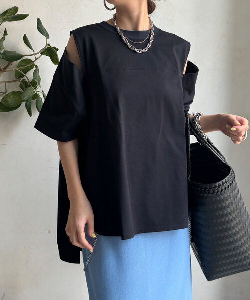 ■2024 SPRING & SUMMER ITEM■シンプルながらもデザイン性があっておしゃれ。肩部分にスリットを施した5分袖tee。ヒップや腰まわりを自然とカバーしてくれる丈感で安心感も抜群。やや前後差のある丈感で、おしゃれ見えしてくれるため、ボトムインせずルーズに着るのもおすすめです。ベーシックなカラー展開で、様々なアイテムと合わせやすいのもうれしいポイント。- POINT -・肩部分にスリットをプラス・安心感のある丈感・ベーシックなカラー展開で合わせやすい◎--------------------------------洗濯:手洗い可能透け感: ほとんどなし裏地: なし伸縮性: あり光沢感: なし--------------------------------【 ♡ をクリックでお得な情報をお知らせいたします 】〈 商品のお気に入り登録 〉 お気に入りアイテムのお値下げ・再入荷・在庫ラスト1点など通知を受けることができます。〈 ブランドのお気に入り登録 〉DOUDOUの新商品や再入荷、セール、クーポン配布などお得な情報を受けることができます。--------------------------------------※ 生産の都合上、お届け時期が前後する場合がございます。※ 掲載画像の商品の色味は、 撮影場所や光の当たり具合などにより色味が異なって見える場合がございます。 また、お客様のお使いのPC・スマートフォン等のモニター環境などにより色味が異なって見える場合がございます。予めご了承の上ご注文ください。 ※ 着用、お取り扱いの際は、商品についている品質表示とアテンションタグを必ずご確認下さい。