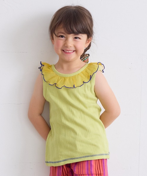 【CALMiA】夏コーデにオススメのカットソー☆ふんわりとしたチュールカラーがポイント。ステッチやメローの配色がコーデのアクセントになります。後ろ側は深い襟ぐりにラインが施されてるので、バックスタイルもとっても可愛い♪レイヤードで衿を出して頂くのもオススメ◎デニムやショートパンツと合わせて1枚でのスタイルも◎まさに夏のオシャレにはぴったりのアイテムです☆■モデル着用アイテムマチつきポケットショートパンツ:0030141005