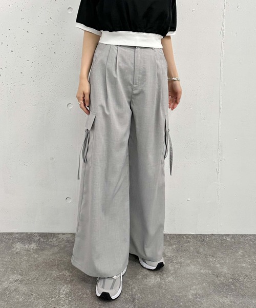 ■カーゴパンツを綺麗目に■ 大人っぽくカーゴパンツを取り入れたい方必見。 さらっとしたスラックスのような生地感は落ち感があるのですっきりとした印象で着こなせます。 サイドの大きなポケットが特徴のデザイン。 普通のスラックスよりカジュアル見えするのでトレンドのスポーティーなスタイリングにぴったりです。 表面のタックデザインでゆとりのあるワイドデザイン。 気になる下半身をカバーしてくれるのでどなたでも綺麗に着ていただけます。 短めなすっきりとした丈感のトップスでスポーティーなスタイリングがおすすめ♪ ーーーーーーーーーーーーーーー 透け感:なし 裏地:あり 伸縮性:後ろのみゴム 光沢感:なし 生地厚さ:普通 洗濯方法:手洗い可 ※詳しいお手入れ方法は商品についているタグをご覧ください ーーーーーーーーーーーーーーー ※ご利用のモニター環境により、実際の色味と多少異なる場合がございます。 … information … 欲しいitemをお気に入り登録(♡マークをclick) ・お買いのがし対策…完売itemの再入荷やラスト1点の情報をお知らせ ・欲しいitemをお得にget…price downになったらいち早くお知らせ ・スムーズ検索…ZOZOのお気に入りアイテムページで簡単checkできるから、再検索不要♪