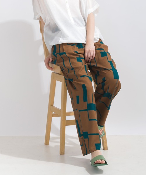 幾何学プリントが目を惹くイージーパンツレーヨン特有の発色の良さと滑らかな落ち感に、麻ならではのスラブ感と凸凹感のあるナチュラルな生地の表情が特徴のレーヨンフレックススラブを使用しています。軽量でさらっとした肌触りに、ウエストはゴム仕様でリラクシーな履き心地で暑い季節も快適に過ごせます。シームポケット付きで実用性も兼ね備えています。オーバーサイズのトップスやチュニックと合わせたゆったりしたスタイリングや、柔らかいブラウスと合わせてきれいめカジュアルにまとめるのもおすすめです。【Feel Cool】この商品はレーヨン素材を使用しているため、肌当たりがさらりとひんやり感じられます。(感じ方には個人差があります)※この製品はインド製の生地を使用しています。プリントにより生地の厚みに差が生じる場合があります。ひとつひとつの見え方や風合い、サイズにばらつきが生じますが、インド製ならではの温かみのある風合いをお楽しみください。織りキズ、染ムラ、多少のプリントずれは商品の特徴として予めご了承お願い致します。※ウエスト総ゴム※ウエスト紐付き【詳細情報】厚み:■薄手 □ふつう □厚手透け感: ■なし □あり光沢感: ■なし □あり伸縮性: ■なし □あり裏地: ■なし □ありポケット:□なし ■あり 重量: 約250g※撮影場所や明るさにより実際の商品と色味が若干異なる場合がございます。 ☆商品のお気に入り♡登録を押せば”再入荷通知”や”残りわずか通知” 値下げのお知らせが届きます!お気に入りのブランド登録していただければ新商品入荷のお知らせも届きますので是非登録してみて下さい