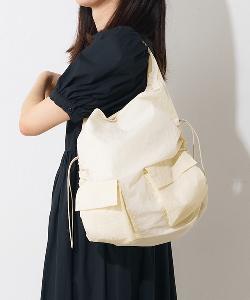 サイドのコードを引っ張り、くしゅっと感やシルエットを自分好みに調節できるバッグ。外側内側ともに大小さまざまなポケットが全部で5つついており、荷物の整理も可能。もちろんA4サイズも入るので、書類やファイルを入れて通勤通学にもぴったり。ナイロンの軽量素材でワンハンドルタイプなので、バッグ自体が軽量なのもうれしいポイント。一見コンパクトに見えて大容量なので、普段のお出かけはもちろん、日帰り旅行にも◎〇ポケット外ポケット×2内ポケット:ファスナータイプ×1、ミニポケット×2~Actually(アクチュアリー)~「ファッションを贈ろう!」がテーマの雑貨ブランド。Actuallyとは「実際」という意味。実際使ってみてよかった、気にいったと言ってもらえることを目指しています。トレンドじゃなくてマイフェイバリット。なんでも持ってるけど欲しくなるもの。古びても愛着があってすてられない、そんなものを作っていきたい。【お買い物をよりお楽しみいただくために】▽商品のお気に入り登録(ハートマークをクリック)完売カラーの再入荷通知や、ラスト1点の通知、セールの通知も受け取ることができます。▽ブランドのお気に入り登録新商品や再入荷などいち早くブランドのお得な情報を受け取ることができます。
