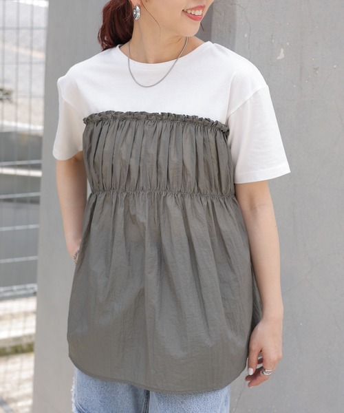 LEPSIMで大人気のドッキングトップスが夏仕様で登場! 【デザイン】 トレンド感のあるジャガード素材とチュール素材で涼しげな雰囲気の1枚です。胸下辺りで切り替えが入るので腰の位置が高く見えスタイルアップ効果も◎暑い夏に重ね着をしなくてもレイヤードスタイルが叶います! 【スタイリング】 ・人気のカーブデニムとボリュームサンダルで大人カジュアルコーデがおすすめです。 ・すっきりとしたシルエットのスカートとも相性抜群です。 --------------------------------------------------- 【気になる商品はお気に入り登録がおすすめ!】 ・在庫残りわずか ・再入荷 ・セールの情報 などの通知を受け取ることができます。 気になる商品は♡をクリックして、 「お気に入り登録」しましょう! 【ショップ・ブランドのお気に入り登録も!】 新商品や再入荷、セール、クーポンの配布など、 いち早くお得な情報を受け取ることができます。 ---------------------------------------------------
