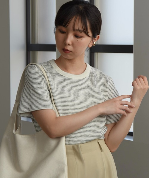 【ラウンドネックボーダートップス】 ・ぽこぽことした生地感がポイントのカットソー ・適度なストレッチ性により、動きやすさと快適さのあるアイテム ・程よくコンパクトなシルエットでレイヤードにもおすすめ ・さまざまなスタイリングに合わせやすく幅広いシーンで活躍します 透け感:なし 伸縮性:ややあり ※公式オンラインストアでお求めの際は、商品カラー名が異なりますのでご注意ください。 Mix→アイボリー