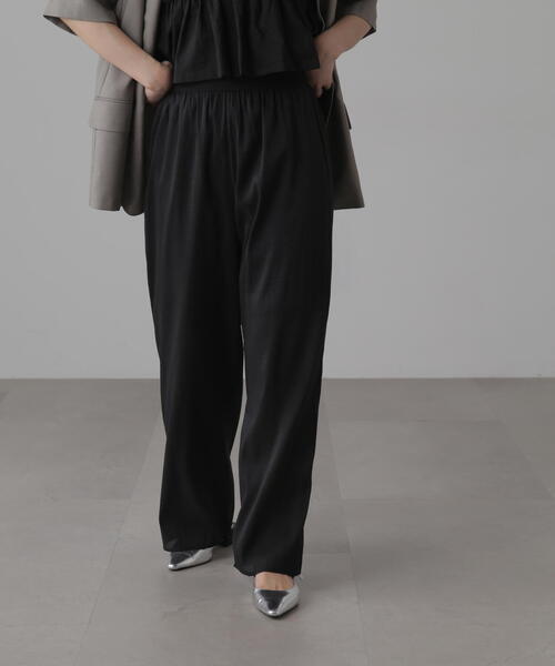 〔fabric&design〕ブラウス・シャツやワンピースなどに使用されるシアー生地をパンツにした、清涼感のあるパンツ。夏、重たい印象になりがちなボトムスを、ウエストゴムのリラックス感あるパンツに仕上げました。インナーのペチコートは別付け仕様になります。〔styling〕サラッとルーズなシルエットのTシャツと合わせ、ラフに着ていただくのがおススメです。上品なシアー生地なので、無地T合わせできれいめな印象に、またプリントTでカジュアルなスタイルに。■透け感:あり■生地の厚さ:薄手■裏地:あり■伸縮性:なし■光沢:なし■シルエット:スタンダードmodel:骨格ウェーブ---------------------------------------------------◆商品のお気に入り登録◆お気に入りアイテムの値下げ・再入荷・在庫1点などの通知を受け取ることができます。◆ブランドのお気に入り登録◆新商品や再入荷、セール、クーポン配布などお得な情報を受け取ることができます。---------------------------------------------------