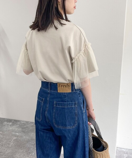◇fredy emue◇ 【2024 SS】 袖チュールが女性らしさを演出してくれる優秀カットソー ●point ・袖にチュールを重ねた1枚で着映えするカットソーです ・シンプルなTシャツの袖にチュールが付いたレディライクな1枚 ・さらっとした綿混のポンチ素材が着心地もよく、透け感も気にならず万能です ・気になる二の腕周りもカバーしてくれる優秀シルエット◎ ・程よい丈感でパンツでもスカートでも合わせやすいアイテムです ・袖チュールの甘めなアイテムなのでカジュアルなパンツやデニムを合わせたコーデがオススメです 透け感:オフホワイトのみ若干あり 裏地:なし 伸縮性:若干あり 光沢感:なし 洗濯:手洗い可 ●お取扱い上のご注意● *商品を長くご愛用していただきたいため、アテンションタグがある場合は必ずご確認の上、着用又はお取り扱い下さい。 *画像の商品はサンプルとなりますので実際の商品と仕様(主にファスナー・釦等の付属品)、加工、サイズが若干異なる場合がございます。 *店頭及び屋外での撮影画像は、光の当たり具合で色味が違って見える場合があります。商品の色味は、スタジオ撮影の画像をご参照下さい。 *商品画像に関しては出来る限り忠実に表示出来るよう努めておりますが、お客様がご利用のモニターの設定及び特性により、実際の商品と比較し色味に若干の誤差が生じる場合があります。 *製品洗い加工の商品は、多少の歪み、シワなどが見られたり、風合いやサイズ等が1枚1枚異なります。汗や雨等で濡れた時や、摩擦により色落ちし、他の衣料を汚すことがありますので(特に濃色のもの)ご注意ください。 ◇商品のお気に入り登録◇ 【お気に入りに登録 ♡マークをクリック】を是非ご活用ください! 再入荷の通知や、ラスト1点の通知、セールの通知がいち早く届きます。 ◇ブランドのお気に入り登録◇ 新商品や再入荷など、いち早くブランドのお得情報が届きます。