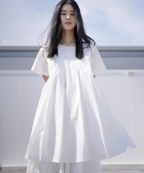 <デザイン> - ミニマルなチュニックワンピース - 太幅のプリーツ - プルオーバー型/バックボタン開閉 - サイドポケット - 裏地なし <素材> - ハリのあるコットンナイロン ※着用、お取り扱いの際は商品についておりますアテンションタグ、洗濯ネームを必ずご確認ください。 ※モデル撮影画像は、光の当たり具合やパソコンなどの閲覧環境によって、実際の色味と異なって見える場合がございます。商品の色味は商品単体で撮影した詳細画像をご参照ください。 メーカー品番:s/s tuck dress eunoia | ユノイア 2014年に設立された韓国のブランド。‘’eunoia‘’はギリシャ語で「美しい考え」という意味。韓国の彫刻、建築、陶器、瓦などによく見られる、なだらかな曲線からインスピレーションを受け、黒と白を基調とした繊細なスタイルを表現。豊かなシルエットとクラシックかつユニークな、美しいスタイルを展開しています。