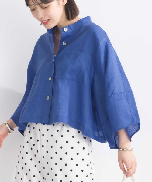 清涼感のあるリネン100%のシャツジャケット 身幅が大きめで裾に向かってやや広がるふんわりとしたシルエット ボリュームはありますが麻素材と短めの着丈でバランスがとりやすく 立体感のあるコクーン袖が手首を細く見せてくれます。 すっきりとしたスタンドカラーに大きめのシェルボタンがアクセント ジャケットとしてはもちろん、リネンシャツとしても着用いただけます。 ※こちらの商品は麻を使用しております。 素材の特性上表面にネップや色むら、織フシ(太い線状のもの)がありますが 不良ではございません。素材の特徴としてご理解下さいませ。 【詳細情報】 厚み:■薄手 □ふつう □厚手 透け感: □なし ■あり 光沢感: ■なし □あり 伸縮性: ■なし □あり 裏地: ■なし □あり ポケット:□なし ■あり 重量: 約180g ※撮影場所や明るさにより 実際の商品と色味が若干異なる場合がございます。 ☆商品のお気に入り♡登録を押せば ”再入荷通知”や”残りわずか通知” 値下げのお知らせが届きます! お気に入りのブランド登録していただければ新商品入荷のお知らせも届きますので 是非登録してみて下さい
