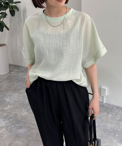 ◇fredy emue◇ 【2024 SS】 リラックス感のある着心地のシアー感が今っぽいTシャツブラウス ライトグレーのカラーはWEB限定カラーです ●point ・ゆったりとしたシルエットのシアー感が爽やかなTシャツブラウスです ・軽くてサッと着れる着心地の良い1枚 ・透け感が清涼感を演出し、爽やかな印象に! ・シワ感のある素材で取り扱いもしやすいアイテムです ・インしてもアウトでも決まる丈感でシンプルなデザインなのでどんなアイテムとも合わせやすい、着回し力の高いアイテムです ・袖口もゆったりめのロールされているデザインで腕周りを華奢見えさせてくれます ・シンプルでベーシックな1枚は持っておくと便利な優秀アイテムです 透け感:あり 裏地:なし 伸縮性:なし 光沢感:なし 洗濯:手洗い可 ●お取扱い上のご注意● *商品を長くご愛用していただきたいため、アテンションタグがある場合は必ずご確認の上、着用又はお取り扱い下さい。 *画像の商品はサンプルとなりますので実際の商品と仕様(主にファスナー・釦等の付属品)、加工、サイズが若干異なる場合がございます。 *店頭及び屋外での撮影画像は、光の当たり具合で色味が違って見える場合があります。商品の色味は、スタジオ撮影の画像をご参照下さい。 *商品画像に関しては出来る限り忠実に表示出来るよう努めておりますが、お客様がご利用のモニターの設定及び特性により、実際の商品と比較し色味に若干の誤差が生じる場合があります。 *製品洗い加工の商品は、多少の歪み、シワなどが見られたり、風合いやサイズ等が1枚1枚異なります。汗や雨等で濡れた時や、摩擦により色落ちし、他の衣料を汚すことがありますので(特に濃色のもの)ご注意ください。 ◇商品のお気に入り登録◇ 【お気に入りに登録 ♡マークをクリック】を是非ご活用ください! 再入荷の通知や、ラスト1点の通知、セールの通知がいち早く届きます。 ◇ブランドのお気に入り登録◇ 新商品や再入荷など、いち早くブランドのお得情報が届きます。