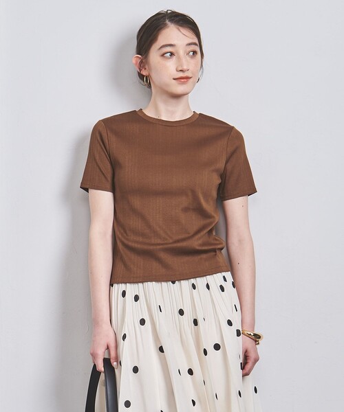 コンパクトなサイズ感のランダムリブTシャツ ■デザイン 丈をやや短めにし、タックアウトした際にバランスよく着こなせるサイズ感。 ベーシックなデザインに適度なアクセントをプラスするランダムリブがポイントです。 ■素材 細番手の糸ムラの少ないコンパクト綿糸を使用した、ランダム柄のテレコ編み。 度詰めで締まりがあり、仕上げ加工で毛羽を落とし、特殊なシルケット加工を施して滑らかな風合いに仕上げています。 ■コーディネート ボトムのシルエットを問わずコーディネートいただける万能アイテム。 ベストやジャケットのインナーとしても活躍します。 ============================ 裏地:なし 透け感:OFF WHITEはややあり 伸縮:ややあり 光沢感:なし ケア方法:手洗い可・ドライクリーニング ============================ 【注意事項】 ※商品を使用前に、タグ等に記載されている「取り扱い上の注意書き」、「洗濯表示」を必ずご確認ください。 ※商品画像は、光の当たり具合やパソコンなどの閲覧環境により、実際の色味と異なって見える場合がございます。あらかじめご了承ください。 ※商品の色味の目安は、商品単体の画像をご参照ください。 店舗へお問い合わせの際は、全国のUNITED ARROWS各店舗まで下記の品名/品番をお申し付けください。 品名:□UBCMD RNDM RIB FIT TEE 品番:15172992534