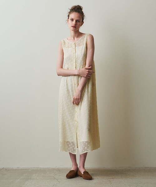 フラワージャカードを使用した、シアーなノースリブワンピース。ロング丈に絶妙な位置の切り替えがシックな雰囲気です。アンダードレス付きで一枚着はもちろん、上からジャケットやシャツなどを羽織るレイヤードや、タートルネック等をインナーに合わせるのもおすすめ。フロントボタンを開けて、ジレのような着こなしも可能。どこかレトロな雰囲気が魅力の一着です。同シリーズでシャツがございます。「品番:82111050273」【注意事項】※商品を使用前に、タグ等に記載されている「取り扱い上の注意書き」、「洗濯表示」を必ずご確認ください。※商品画像は、光の当たり具合やパソコンなどの閲覧環境により、実際の色味と異なって見える場合がございます。あらかじめご了承ください。※商品の色味の目安は、商品単体の画像をご参照ください。※画像の商品はサンプルです。店舗へお問い合わせの際は、全国のSteven Alan各店舗まで下記の品名/品番をお申し付けください。品名:SA PE FLW/CHN DRS 品番:82261050648