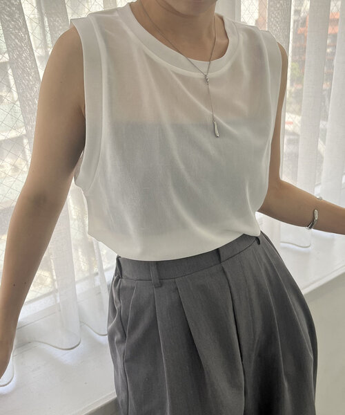 カップ付きのベアキャミがセットになった1枚で完成するシアータンク 商品ポイント ・シアー素材だけど程よい透け感で露出も気にならず着やすい ・ホワイトはキャミがブラックでより透け感を楽しめる ・キャミはトレンドの短丈のデザイン ・タンクを重ねることでウエストの露出感なく、トレンドを取り入れられる ・肩先を覆ってくれるタンクトップで安心感あり ・ポリエステル素材でシワにならず、速乾性もあり夏に涼しく着られる1枚 スタイリングポイント ・スラックスでメンズライクに ・マキシスカートで女っぽく ・ベアキャミをインナーにお手持ちのシャツを羽織るスタイリングもおすすめ ********************** 透け感:あり 裏地:なし 伸縮性:あり 光沢感:なし ********************** ▼洗濯方法 液温は30℃を限度とし、洗濯機で非常に弱い洗濯ができる ※撮影場所やお使いのモニター環境により若干お色味が異なる場合がございます。 特にロケの撮影では明るく見える傾向にございます。 ※商品はサンプルで撮影をしております。若干の仕様が変更になる場合がございますので予めご了承の上ご注文くださいますようお願いいたします。 ▼商品のお気に入り登録 完売カラーの再入荷通知や、ラスト1点の通知、セールの通知も受け取ることができます。 ▼ブランドのお気に入り登録 新商品や再入荷など、いち早くブランドのお得な情報を受け取ることができます。
