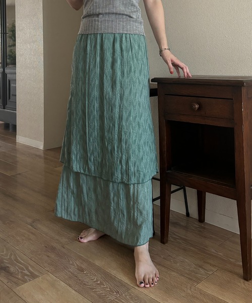 染柄シワ加工を施した、大人のティアード風シアーレイヤードスカート 【デザイン / シルエット】 動くたびにほどよく現れるドレープと裾に向けてさりげなく広がるシルエット。 シアーの上品な透け感やレイヤードデザインが、甘すぎずこなれた大人な印象に演出してくれます。 ウエストゴム仕様なのでリラックスした履き心地です。 【素材】 染柄のシワ感のような加工を施したシアー素材。 シワが気になりにくいのも、うれしいポイント。 シアー素材でも裏地付きなので安心して着用できます。 【スタイリング】 スッキリしたシルエットなので、ゆったりとしたサマーニットなどオーバーサイズなトップスはもちろん、 コンパクトなトップスとの相性も抜群です。 ----------------------------- 裏地:あり 光沢感:あり 透け感:あり 伸縮性:あり 生地の厚さ:薄い 季節:春、夏、秋、冬 ----------------------------- シアー / ロングスカート / サテン / ストレート / ナロースカート / Iラインスカート / ティアードスカート / ペンシルスカート / 染柄 / タイダイ柄 / 総柄 / 柄スカート / シワ加工 / ウォッシャブル加工 / カジュアル / 大人カジュアル / ティアード / プリーツ / オフィス / フォーマル / 卒園 / 入園 / 入学 / オンオフ / 高身長 / 低身長 / 手洗い可能 お気に入り登録のオススメ ▼商品のお気に入り登録▼ 再入荷、残り1点、セールなどの通知を受け取ることができます。 ▼ブランドのお気に入り登録▼ 新商品や再入荷、ショップのおすすめトピックスなど、いち早くブランドの情報を受け取ることができます。 --------------------------------------------------- ※画像の商品はサンプルです。 実際の商品と仕様、加工、サイズが若干異なる場合がございます。 ※着用、お取り扱いの際は、商品についている品質表示とアテンションタグを必ずご確認下さい。 ※実際の商品と仕様、加工、サイズが若干異なる場合がございます。 ※照明の関係により、実際よりもやや明るく見える場合がございます。 またパソコンなどの環境により、若干製品と画像のカラーが異なる場合もございます。予めご了承ください。 【 CE'E_SE'E / シーシー 】 into any “colour’s” どんな色や型も、私流。 大人のジャンルレスなファッションを自分らしく。 “colour’s”は color + yours の造語。 『モードもレディライクも、どんなテイストにも染まれる存在でありたい』 『自分のイメージをひとつのカテゴリーで収めたくない』 そんな軸を持つ女性へ。 光沢感:あり 透け感:なし 伸縮性:なし 生地の厚さ:ふつう 季節:春、夏、秋、冬 ----------------------------- セットアップ / ロングスカート / ワンピース / サテン / ストレート / ナロースカート / オフィス /オケージョン / 卒園 / 入園 / 入学 / オンオフ お気に入り登録のオススメ ▼商品のお気に入り登録▼ 再入荷、残り1点、セールなどの通知を受け取ることができます。 ▼ブランドのお気に入り登録▼ 新商品や再入荷、ショップのおすすめトピックスなど、いち早くブランドの情報を受け取ることができます。 --------------------------------------------------- ※画像の商品はサンプルです。 実際の商品と仕様、加工、サイズが若干異なる場合がございます。 ※着用、お取り扱いの際は、商品についている品質表示とアテンションタグを必ずご確認下さい。 ※実際の商品と仕様、加工、サイズが若干異なる場合がございます。 ※照明の関係により、実際よりもやや明るく見える場合がございます。 またパソコンなどの環境により、若干製品と画像のカラーが異なる場合もございます。予めご了承ください。 【 CE'E_SE'E / シーシー 】 into any “colour’s” どんな色や型も、私流。 大人のジャンルレスなファッションを自分らしく。 “colour’s”は color + yours の造語。 『モードもレディライクも、どんなテイストにも染まれる存在でありたい』 『自分のイメージをひとつのカテゴリーで収めたくない』 そんな軸を持つ女性へ。