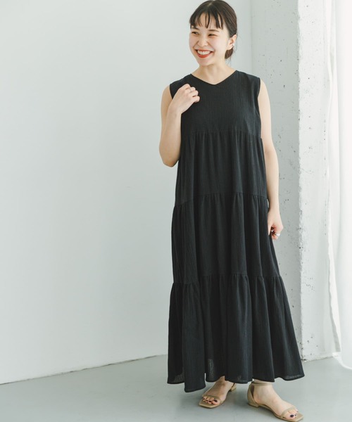 ヨウリュウならではのシワの効いたナチュラルな表情がシーズンムードを高めてくれるノースリーブワンピース。ティアードデザインを採用したレディーライクなディテールがポイント◎さらっとした生地とゆったりシルエットがストレスフリーな着心地を叶えてくれます。 【2024 Spring/Summer】【24SS】 総重量 : 約420g ※商品画像は、光の当たり具合やパソコンなどの閲覧環境により、実際の色味と異なって見える場合がございます。予めご了承ください。 ※商品の色味の目安は、商品単体の画像をご参照ください。 ▼お気に入り登録のおすすめ▼ お気に入り登録商品は、マイページにて現在の価格情報や在庫状況の確認が可能です。 お買い物リストの管理に是非ご利用下さい。 素材感 透け感 :ややあり(L.BEG/膝下のみ) 伸縮性 :ややあり 裏地 :あり(膝下まで) 光沢 :なし ポケット :なし