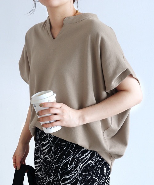 ■Point ゆったりシルエットで身体のラインが気にならない! デコルテラインを綺麗に見せてくれるスリットネックデザイン。 肩より長めのラインでのカット、袖の程よい丈感が 二の腕を綺麗にカバーしてくれます◎ ////////////////////////////////// ▶新色追加◀ グレイッシュベージュ ////////////////////////////////// ■Deteil 肌に優しいコットン100%の薄手生地。 着丈:前/60㎝ 後ろ/64.5㎝ ■Coordinate 裾がややラウンドなので、きれいめコーデも決まります! シンプルなデザインとカラーで着回し力抜群のトップスです。 ■綿素材の商品のお手入れ方法について 綿素材のお洋服はお洗濯方法により縮みやねじれて見える状態になることがございます。はじめてお洗濯をしていただく時に強く縮みが出る事がございます。 そのため、お洗濯の際は「手洗い」または「ドライコース」で行うことをおすすめしております。 また、脱水時間は30秒程度と短くするようにお願い致します。 乾燥機は縮む原因になりますのでご使用はお避け下さい。 干す際は『軽くしわを伸ばして』形を整えてから干していただくことをおすすめしております。 ■■■もっとお買物をお得にお楽しみいただくために■■■ 【商品のお気に入り登録】再入荷のお知らせや、ラスト1点のお知らせ、セールのお知らせを受け取ることができます! 【ブランドのお気に入り登録】新作商品や完売アイテムの再入荷情報など、お得な情報をいち早く受け取ることができます! ※サイズは現物をスタッフが平置き採寸したものになります。 ※モデル着用写真は撮影環境により、多少実際のカラーと異なる場合がございます。 ※生産時期により若干の色ブレやサイズの変動が生じる場合がございます。 生地の素材や種類によってシワになりやすいもの、または同じ素材でも製造時期によって異なる場合がございます。予めご了承くださいますようお願いいたします。