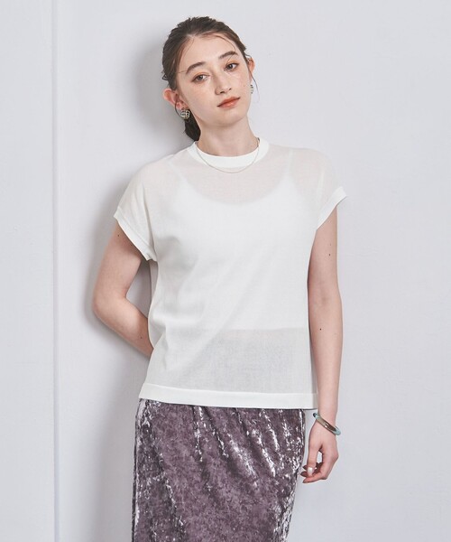 細部にまでこだわった着回し力の高いベーシックニット ■デザイン 首元が詰まったミニハイネックはきちんと感あり、肩までカバーした華奢見えするフレンチスリーブでちょっとしたかわいらしさを表現。 ほどよくゆとりのあるスクエアボックスのシルエットで、リラックスしてご着用いただけます。 袖口と後ろ中心に3本針ステッチを入れてカジュアルテイストをプラスし、細部にまでこだわりました。 その他1は、オフホワイト×ブラックのボーダーです。 ■素材 ドライタッチで清涼感、ほどよいシアー感のある16ゲージの薄手天竺編地です。 襟、袖口、裾のエッジ周りには、伸度のある素材を編み込んみ、シアー感の無い仕様に作られています。 ■コーディネート カジュアルにもきれいめなスタイリングにもお使いいただけるベーシックニットは、スカートやパンツ、デニムアイテムなどさまざまなボトムスと合わせられ、タックイン・アウトのどちらも着こなせます。 ============================ 裏地:なし 透け感:ややあり 光沢感:なし ケア方法:手洗い可・ドライクリーニング ============================ 【注意事項】 ※商品を使用前に、タグ等に記載されている「取り扱い上の注意書き」、「洗濯表示」を必ずご確認ください。 ※商品画像は、光の当たり具合やパソコンなどの閲覧環境により、実際の色味と異なって見える場合がございます。あらかじめご了承ください。 ※商品の色味の目安は、商品単体の画像をご参照ください。 店舗へお問い合わせの際は、全国のUNITED ARROWS各店舗まで下記の品名/品番をお申し付けください。 品名:〇UWSC C/P MINI HI/NFRNC 品番:15181831819