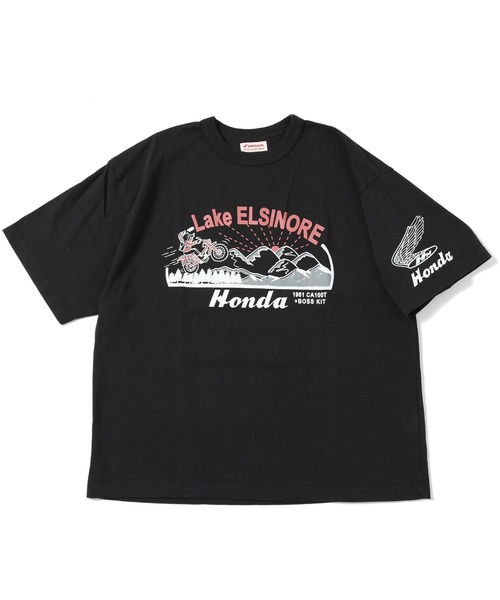 HONDA motorcycle とGypsy and sonsのコラボ商品になります。 グラフィックデザインは世界中で人気の高い 1961年の初代HUNTER Cub 『CT110』の記念TEEにGypsyの解釈でデザインを行った一着。 当時北アメリカのCamelback Mountainを走破するため、SuperCubをオフロードカスタムをし悪路を走行可能にした。 そんなワンシーンを切り抜きました。左袖には1960年代のHONDAのウイングマークが入っています。 生地は16番手の単糸のリサイクルコットンと空紡糸を独自の割合で使用し、度を詰めてしっかりと編み立てております。2種の糸から生まれる素朴なムラ感をお楽しみいただけます。 生地は16番手のGypsy and sons定番の空紡リサイクルコットン天竺を使用。 【空紡糸とは】 通称オープンエンドと呼ばれる機械的に空気の力を使い紡績した糸。 外側を固く、内側を緩く撚りを掛けるとこにより、太くかっちりとしたドライ感のある粗野な性質を持った糸。 ・HONDA motorcycle collab ・vintage washing process ・空紡糸使用16/-天竺 ・製品染め 【GYPSY&SONS(ジプシーアンドサンズ)】 織物の産地として知られる尾州は愛知県の尾張一宮を拠点に素材開発。 加工や染色などの特殊技術を取り込みながら様々な男の仕事着(WORK WEAR)に着目。 ヴィンテージの持つ雰囲気やディティールを再現し、WORK STYLEとDRESS STYLEの両立をキーに独自の世界観を創造。 ユーロカジュアルが持つ都会的なシルエットと1つにすることで、全く新しいWORK&DRESSなカジュアルウェアーを提案します。