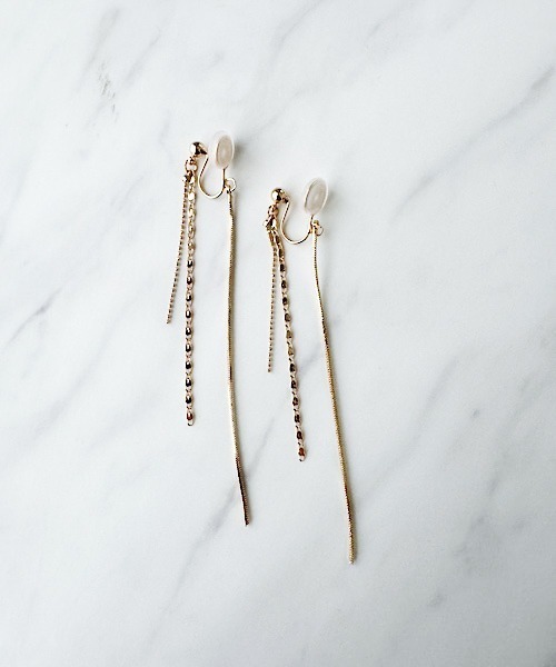 縦のラインが魅力のコイルクリップイヤリング 質感の異なるバーモチーフが存在感を感じるイヤリング。 イヤリングのフロントサイドから2本、バックサイドから1本が下がるデザイン。 動く度にゆらゆらと揺れるデザインはフェイスラインを魅力的に仕上げてくれます。 T I M E L E S S & T H R E E タイムレスなスタンダードさ。 そして、「今」を愉しむマインド。 このふたつの価値観と感性を、 一粒のエッセンスとなるアイテムを通して提案します。