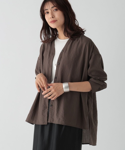 アイロン掛けを生活から取り除く!アイロン要らずの快適シリーズ 昨年も人気だった着回し力の高いVネックのシアーシャツ。 1枚ではもちろん、長い夏の日焼け対策としての羽織シャツとしてもおすすめです。 ーーー ボトムスを選ばずパンツ、スカートとも好相性。 【素材】 ・しわになりにくいのでアイロンいらずでお手入れ楽ちん 【悩みに“効く”ポイント】 ・羽織としても活躍する便利な2WAY ・日焼け防止にも活躍して長く着られる